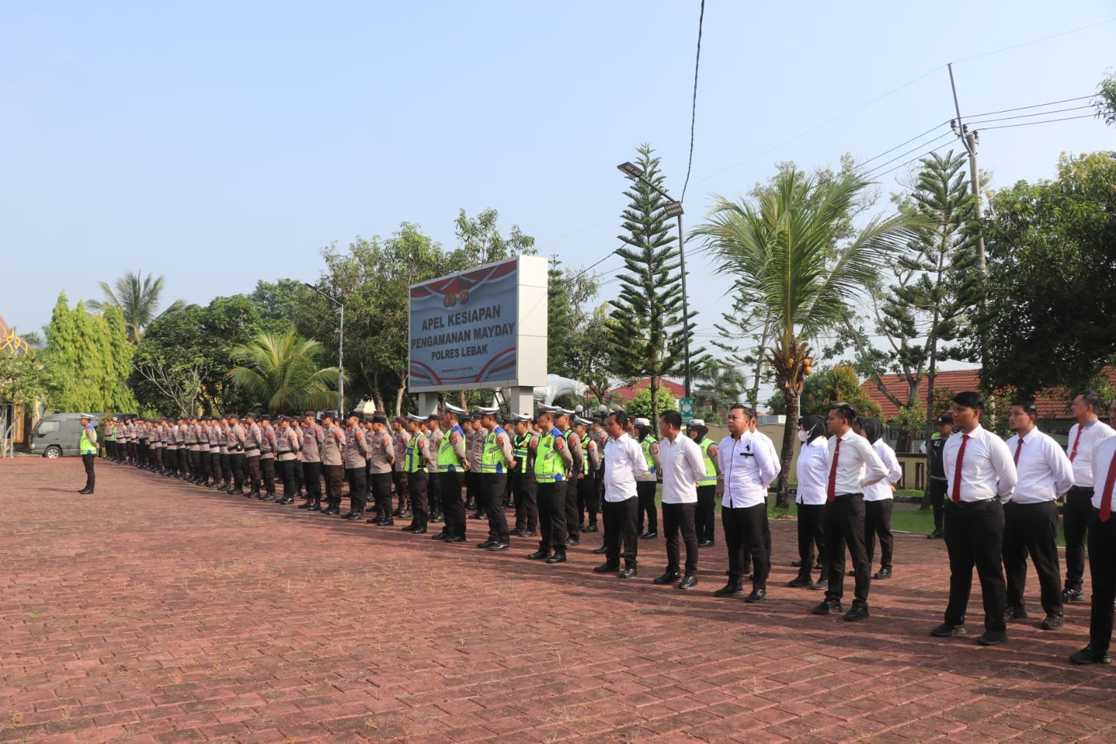 Lebak – Guna memastikan peringatan Hari Buruh Internasional (May Day) berjalan aman dan kondusif, Polres Lebak Polda Banten melaksanakan Apel Kesiapan Pengamanan May Day di Lapangan Mapolres Lebak, Rabu (29/4/2026).