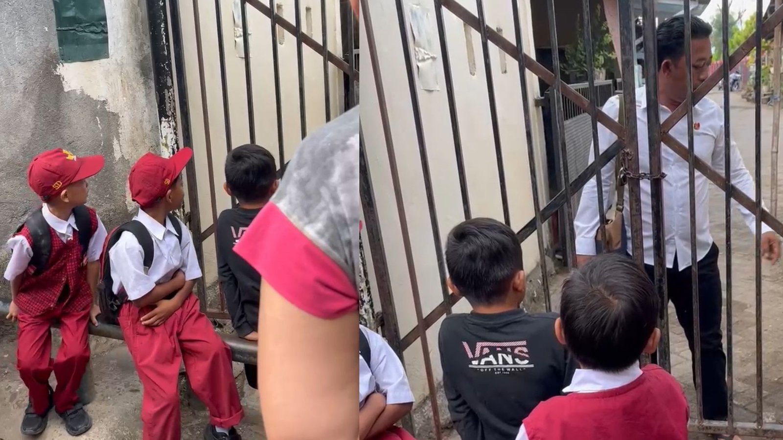 “Kasihan anak-anak, mereka sudah siap dengan seragam, buku, dan tasnya. Tapi malah duduk menangis di depan pagar. Bagaimana hati kami orang tua tidak hancur?” ucap, seorang ibu yang anaknya duduk di bangku kelas 3 SD.