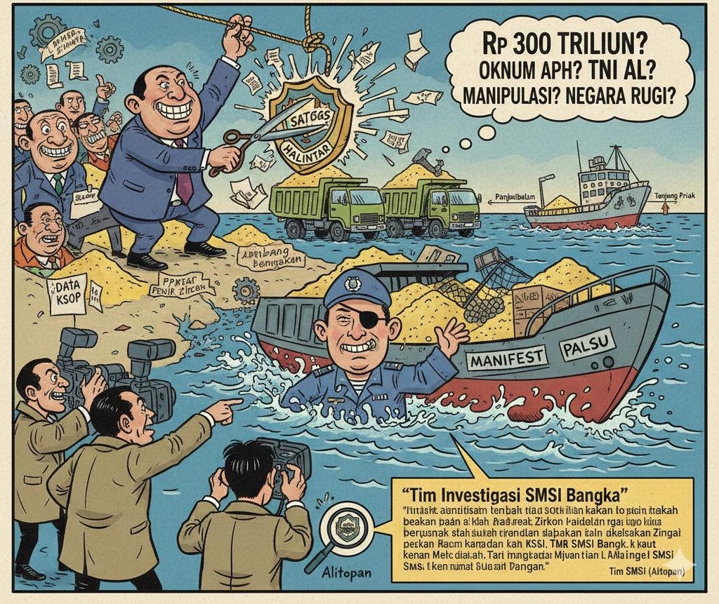 “Kami temukan indikasi manipulasi muatan yang disengaja. Modus ini jelas untuk menutupi jalur penyelundupan material strategis,” ujar tim investigasi SMSI Bangka pada Selasa (06/01/2026).