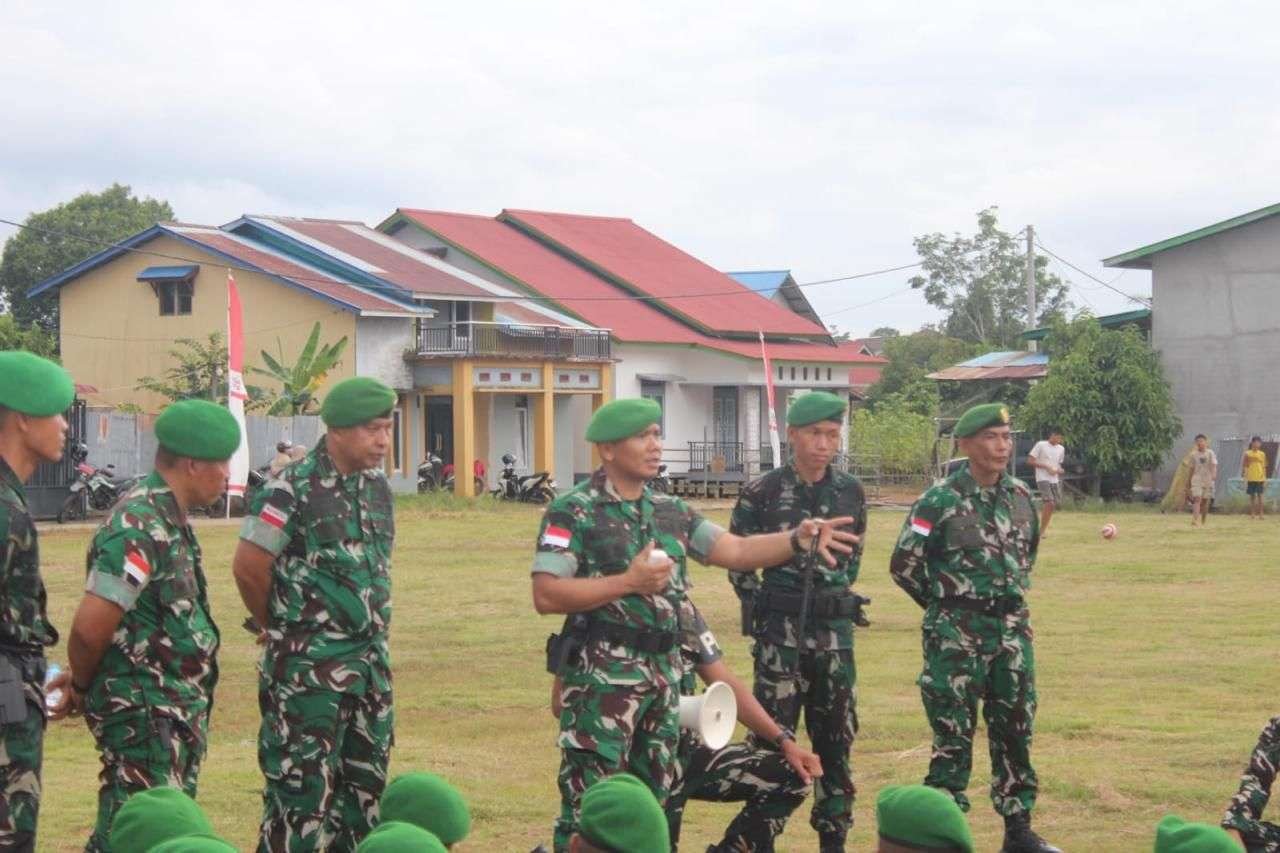 Dandim 1206/Putussibau Berikan Arahan kepada Personel Yonif TP 927/Uncak Kapuas Usai Upacara Penyambutan