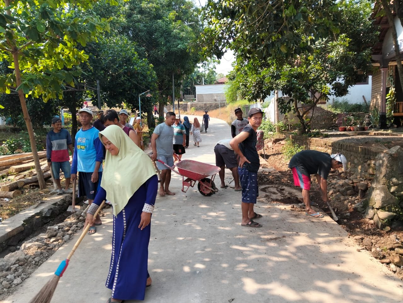 Dalam kegiatan ini, masyarakat bergotong royong membersihkan lingkungan sekitar, mulai dari jalan kampung hingga selokan, agar tetap bersih dan nyaman.