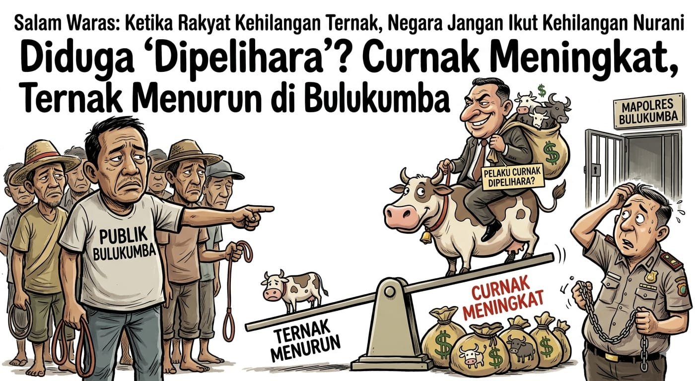 Salam Waras, Bulukumba — Ada yang tidak waras dalam situasi ini. Saat warga desa kehilangan ternaknya satu per satu, pelaku pencurian ternak (curnak) justru seperti sulit disentuh hukum.