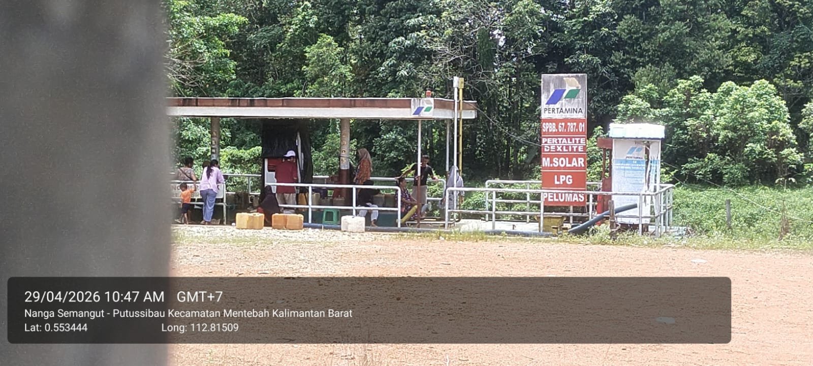 Berdasarkan pantauan di lapangan pada Rabu (29/04/2026) sekitar pukul 10.47 WIB, pintu SPBU terlihat tertutup dan tidak ada aktivitas pelayanan umum. Namun, sejumlah jeriken berisi BBM tampak berada di sekitar lokasi. Warga menduga distribusi BBM dilakukan melalui jalur tidak resmi, seperti akses sungai atau “jalan tikus”, bukan melalui antrean kendaraan di SPBU.