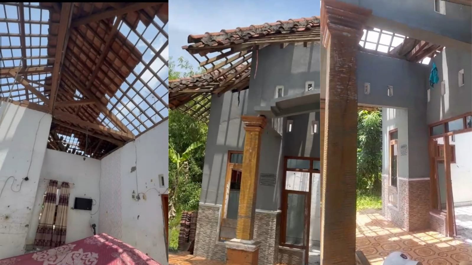 Tragisnya, orang tua Wiwik yang sedang sakit berada di dalam rumah, tak mampu berbuat apa-apa menyaksikan genteng-genteng beterbangan di atas kepala mereka.