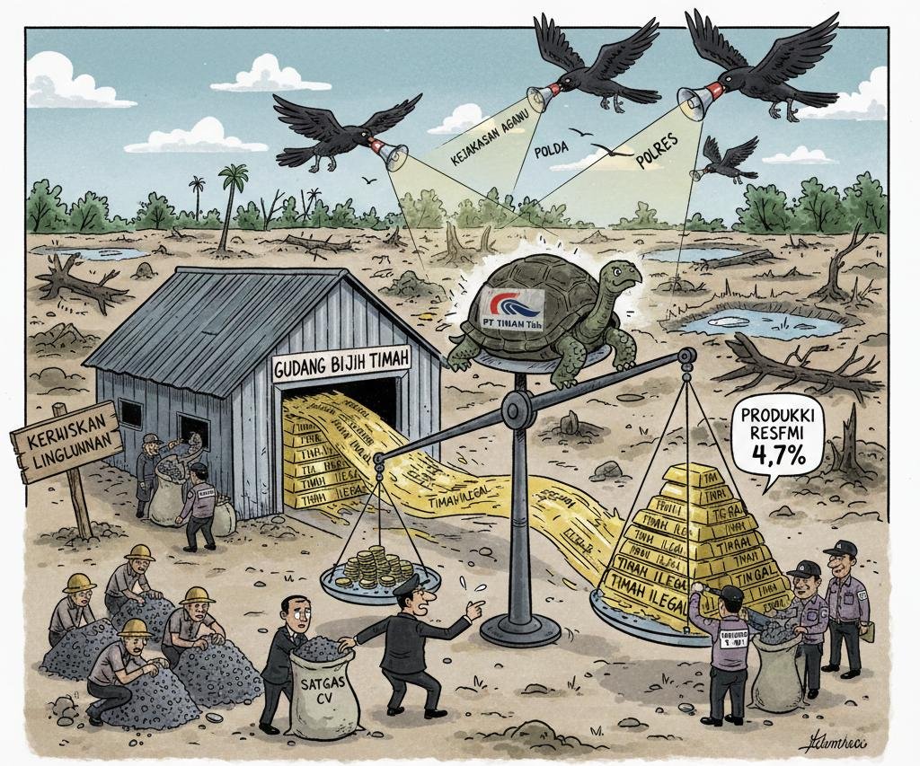 Pertanyaannya: ke mana hasil produksi selama ini disalurkan? Jika masuk ke PT Timah, maka tanggung jawab manajemen tidak bisa dihindari.
