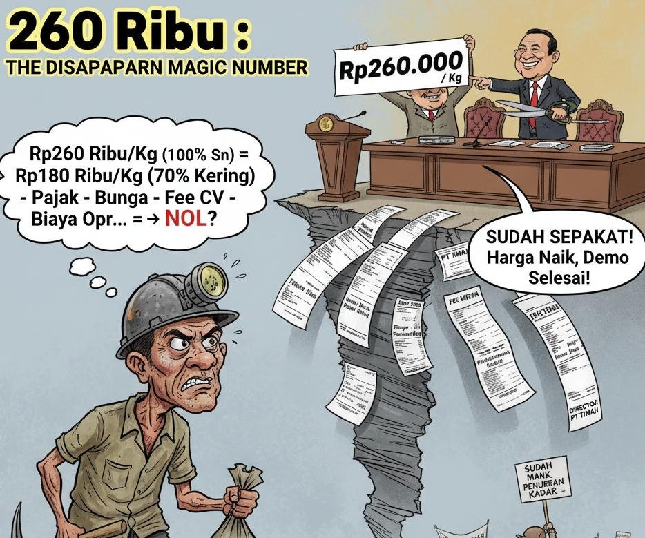 Namun pernyataan tersebut menuai respons sinis dari penambang. Mereka menilai harga Rp260 ribu/kg untuk kadar 100% Sn justru lebih rendah dibandingkan skema sebelumnya.