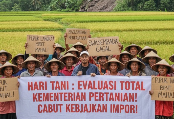 Menurutnya, krisis pupuk, kelangkaan bibit, serta kebijakan impor beras menjadi bukti rapuhnya tata kelola pertanian nasional sekaligus bentuk pengabaian hak asasi manusia di bidang pangan dan kesejahteraan petani.