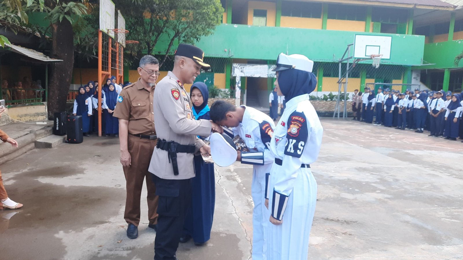 Kapolsek Tamalate Gelar “Police Goes to School di rangkaian Penyerahan Piala Penghargaan” di SMPN 27 Makassar.