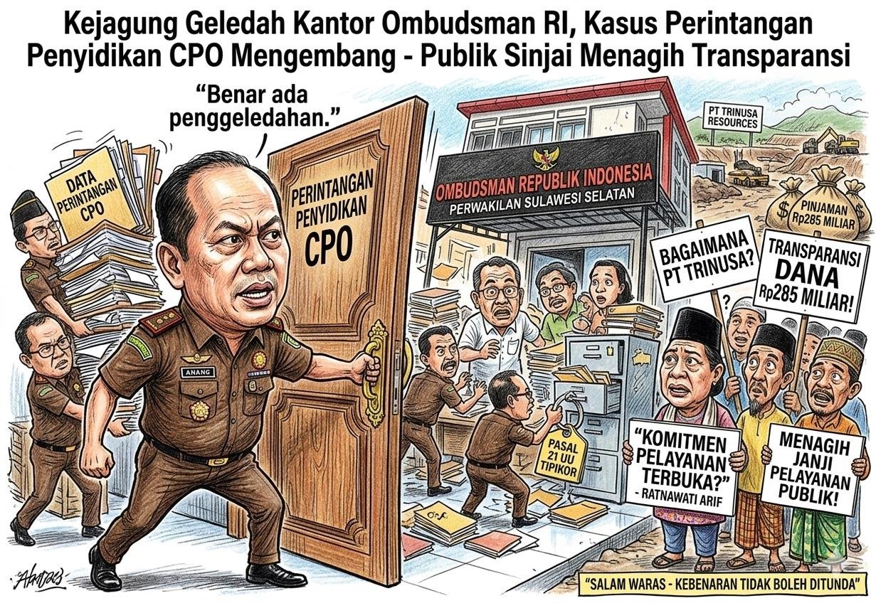 Penyidik Kejaksaan Agung Republik Indonesia melakukan penggeledahan di kantor Ombudsman Republik Indonesia pada Senin, 9 Maret 2026.
