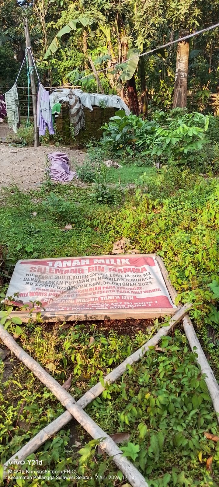 Berdasarkan Putusan Pengadilan Negeri Sungguminasa, objek sengketa tersebut merupakan lahan milik ahli waris Salemang Bin Mamma dengan rincian sebagai berikut:
