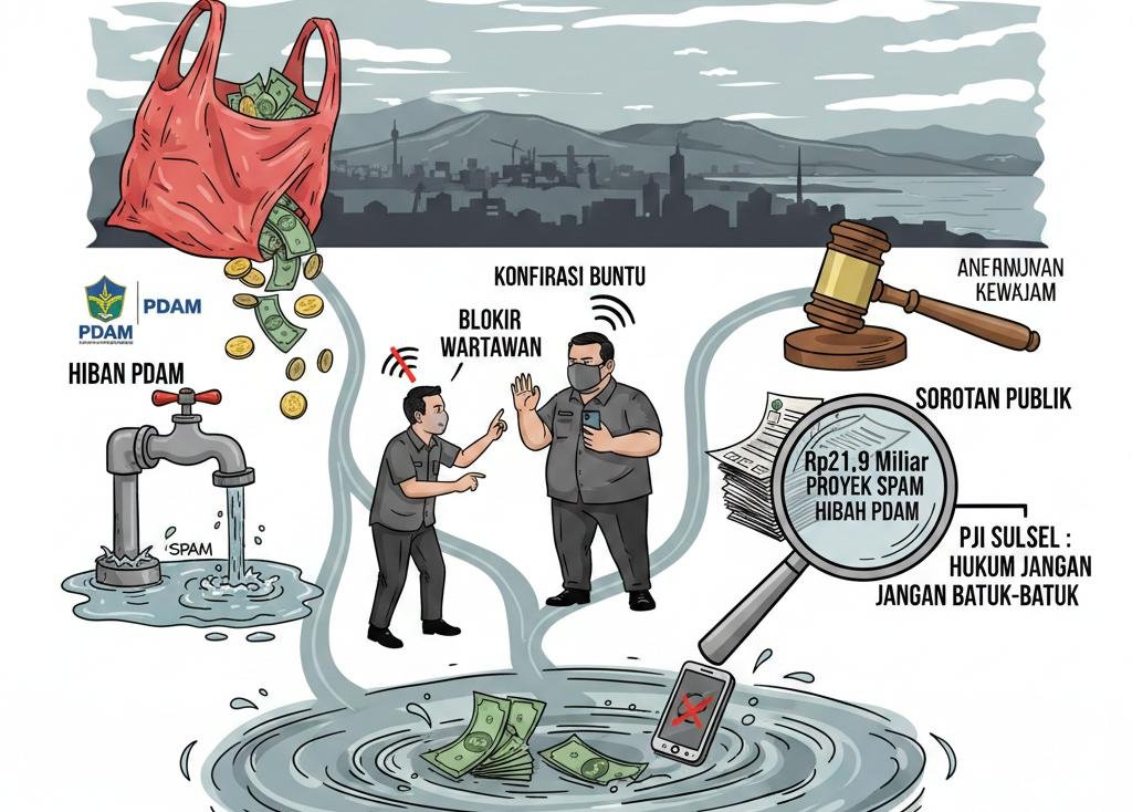 Seiring menguatnya sorotan publik terhadap dugaan praktik fee proyek, polemik program SPAM (Sistem Penyediaan Air Minum), dana hibah PDAM, hingga sikap tertutup pejabat dalam merespons konfirmasi pers di Kabupaten Sinjai, Sulawesi Selatan.