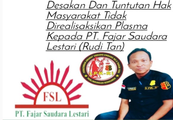 Kami dari LPK RI Kalimantan Barat meminta pemerintah daerah, dinas perkebunan, dan instansi terkait untuk segera turun tangan dan melakukan evaluasi terhadap izin usaha PT. FSL demi keadilan dan kesejahteraan masyarakat.”