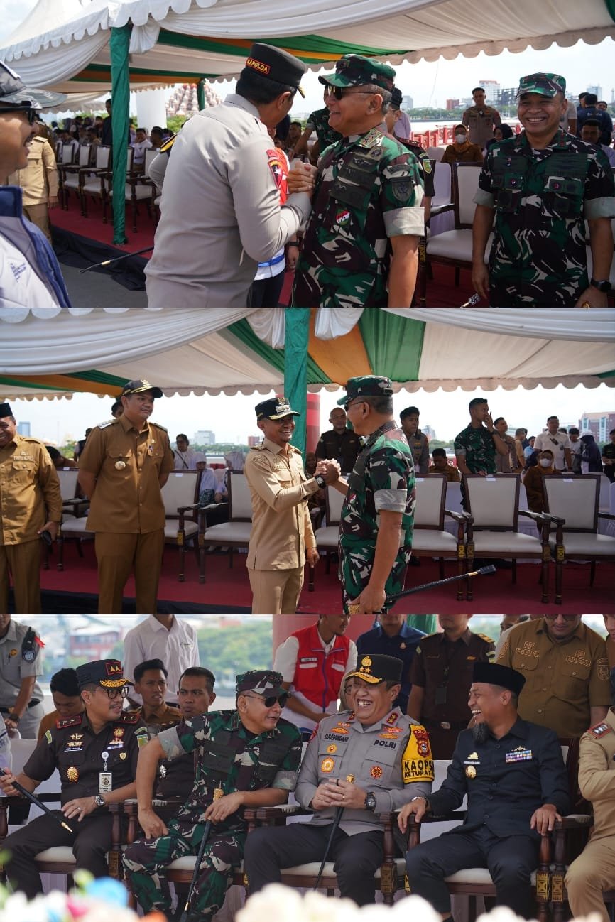 Makassar – Pangdam XIV/Hasanuddin Mayjen TNI Bangun Nawoko menghadiri langsung Pelepasan Mudik Gratis Idul Fitri 2026 / 1447 Pemerintah Provinsi Sulawesi Selatan, yang berlangsung di Jembatan Toraja Kawasan Center Point Indonesiaa (CPI), Jl. Metro Tanjung Bunga, Kota Makassar. Senin, (16/3/2026).