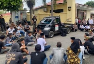 BULUKUMBA – Kapolres Bulukumba, AKBP Restu Wijayanto, S.I.K., menunjukkan pendekatan humanis dengan turun langsung menemui massa aksi dan duduk bersama di atas aspal di depan Mapolres Bulukumba, Senin (27/4/2026). Langkah ini dilakukan setelah sekitar 30 peserta aksi dari Aliansi Pemuda Sapobonto menolak diajak audiensi di dalam aula dan meminta bertemu langsung di lokasi.