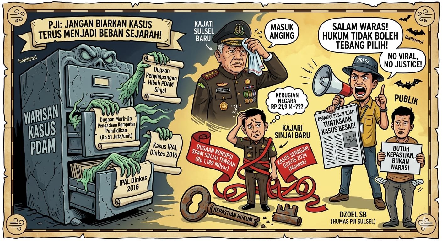 Melalui Humasnya, Dzoel SB, Persatuan Jurnalis Indonesia (PJI) secara terbuka menantang Kepala Kejaksaan Tinggi Sulawesi Selatan dan Kepala Kejaksaan Negeri Sinjai yang baru untuk segera menuntaskan “warisan kasus”, terutama dugaan penyimpangan hibah pada Perusahaan Daerah Air Minum (PDAM) Sinjai.