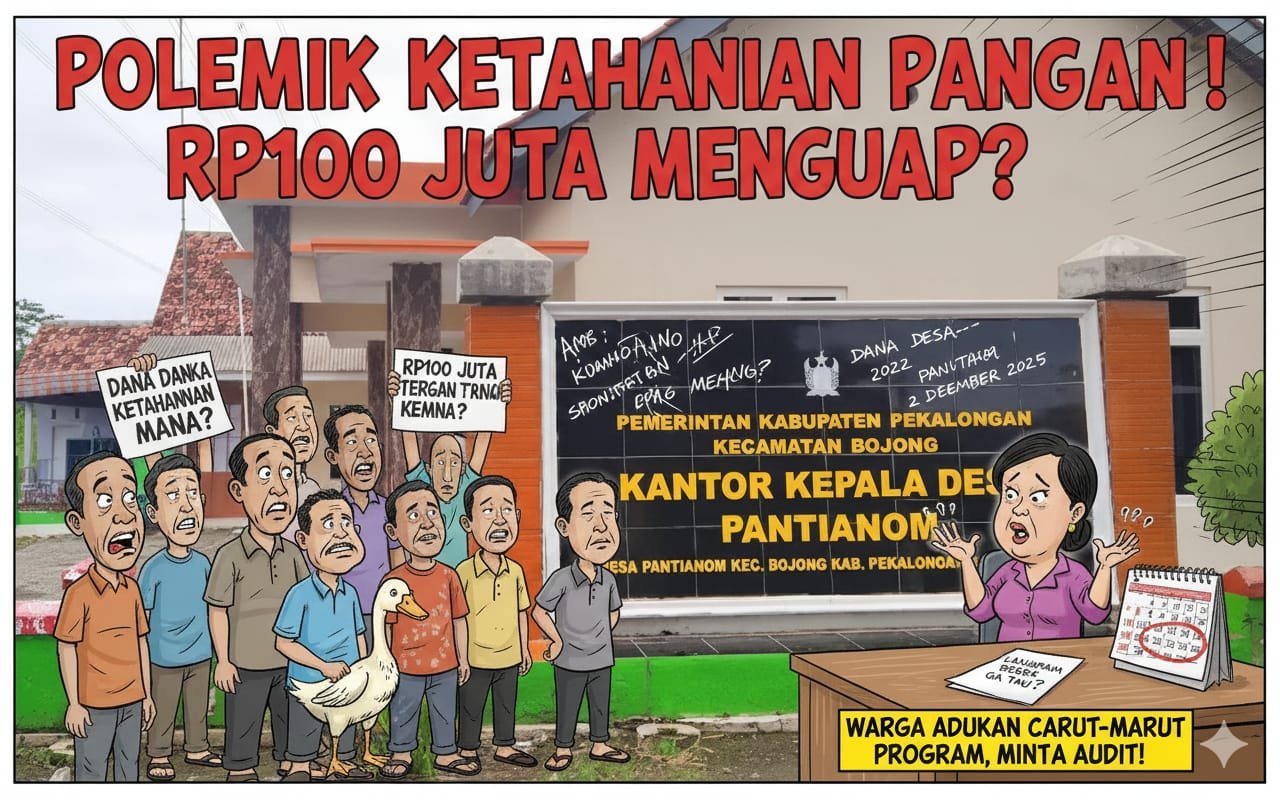 Pekalongan — Dugaan carut-marut program ketahanan pangan kembali mencuat. Kali ini, warga Desa Pantianom, Kecamatan Bojong, Kabupaten Pekalongan, mempertanyakan kejelasan realisasi program Peningkatan Produksi Peternakan yang bersumber dari Dana Desa (DD) Tahun 2022 dengan anggaran Rp100.000.000.