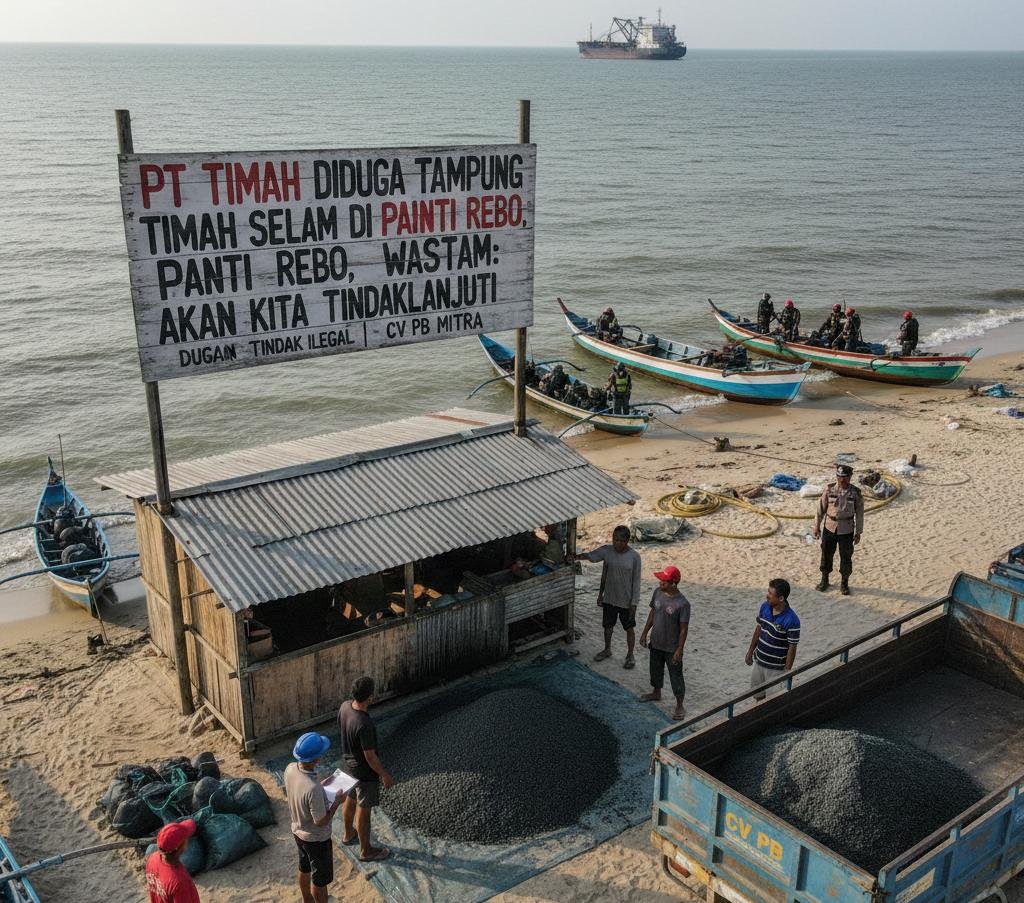 SalamWaras, Bangka – Dugaan praktik penampungan bijih timah hasil tambang ilegal kembali mencuat di wilayah Pantai Rebo, Kabupaten Bangka.