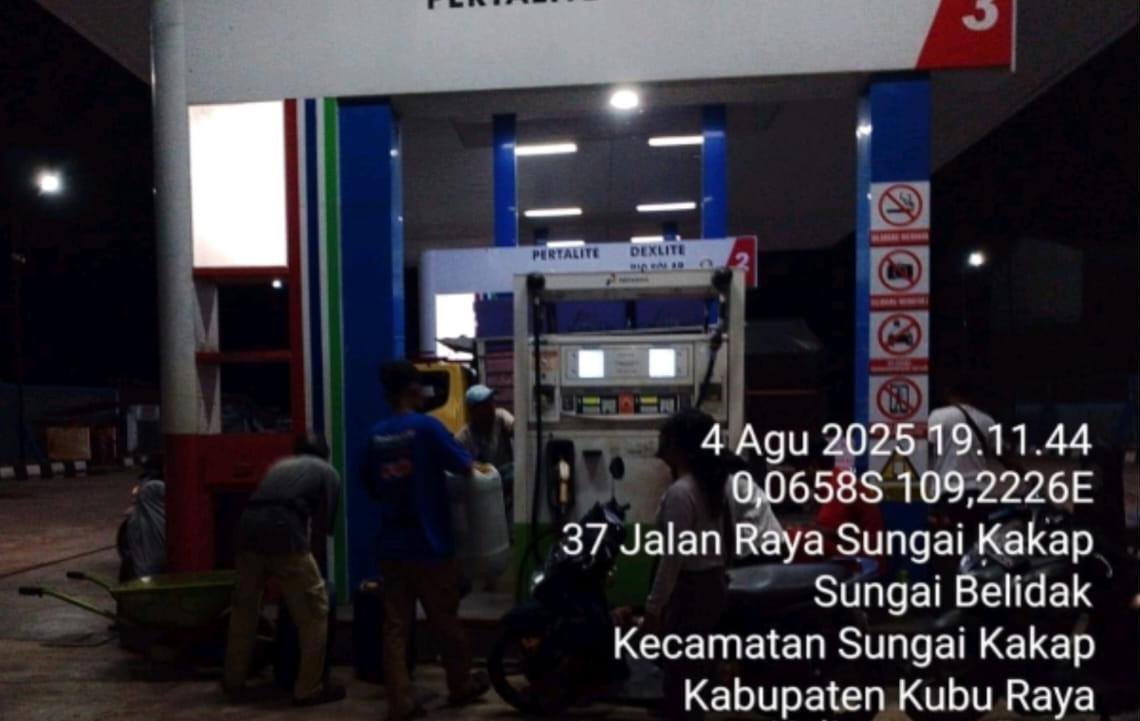 Kubu Raya, Kalimantan Barat — Dugaan penyelewengan Bahan Bakar Minyak (BBM) bersubsidi kembali mencuat di Kabupaten Kubu Raya. SPBU Nomor 64.783.21 yang berlokasi di Jl. Raya Sungai Kakap, Desa Sungai Belidak, Kecamatan Sungai Kakap, diduga kuat menyalurkan Pertalite bersubsidi kepada pihak yang tidak berhak. Jum’at 5 September 2025