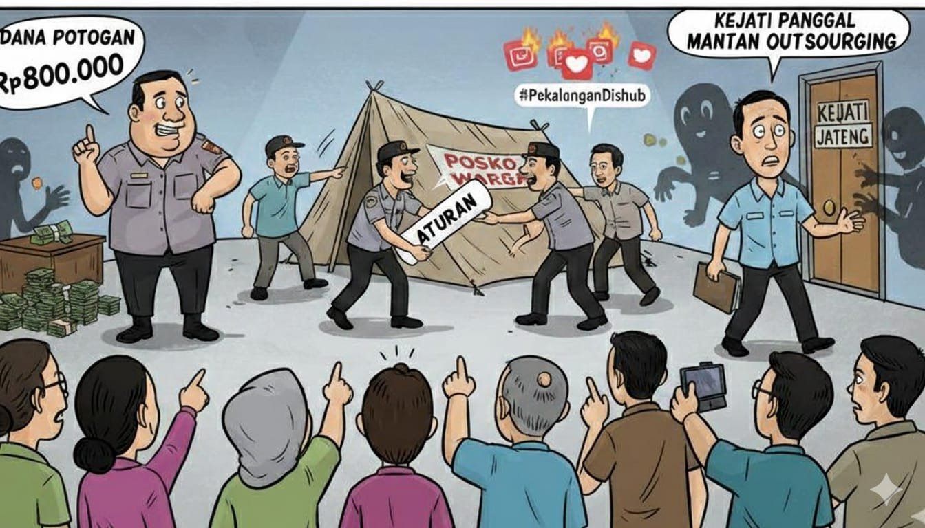 Salam Waras Pekalongan – Kabupaten Pekalongan tengah menjadi sorotan publik. Tiga isu besar mencuat bersamaan: potongan gaji pegawai outsourcing sebesar Rp800.000 per orang, dugaan pengusiran posko relawan oleh Dinas Perhubungan (Dishub), serta pemanggilan mantan tenaga outsourcing Satpol PP oleh Kejaksaan Tinggi (Kejati) Jawa Tengah terkait dugaan korupsi.