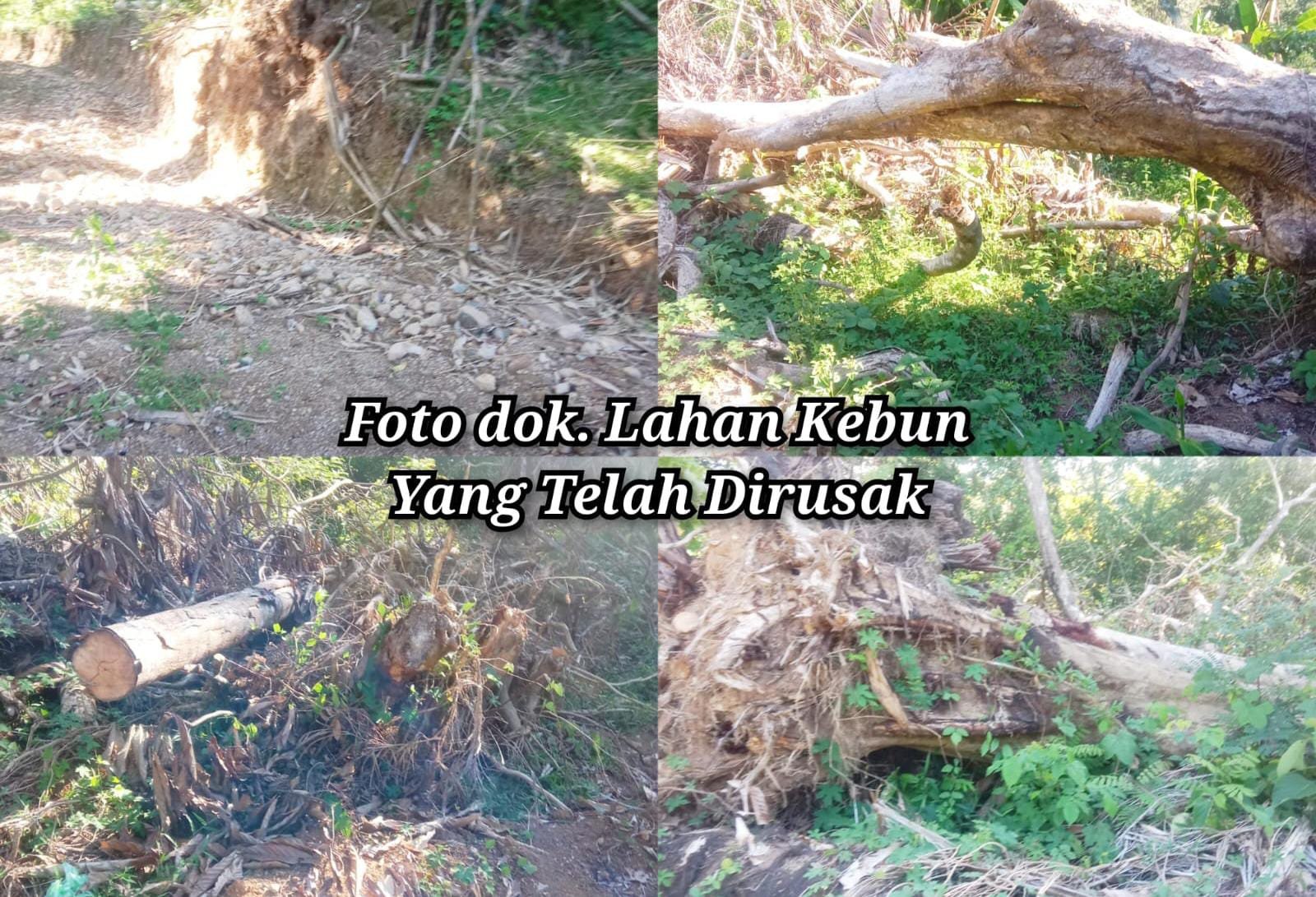 “Beliau tetap ngotot melakukan pekerjaan itu. Akibatnya, banyak tanaman saya yang dirusak, seperti pohon jati, mahoni, dan beberapa pohon kakao di dalam area kebun. Semuanya porak poranda oleh alat ekskavator yang disewanya,” terang Hatta.