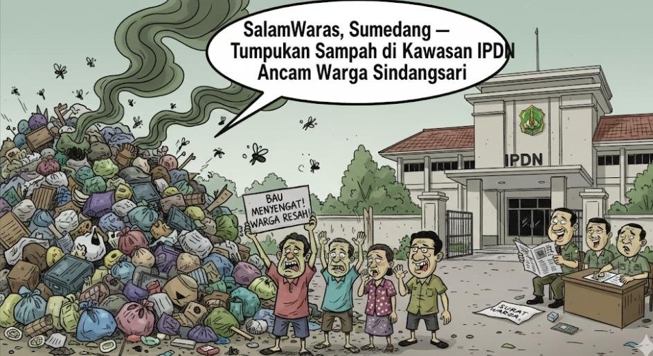 SalamWaras, Sumedang — Kawasan Desa Sindangsari, Kecamatan Sukasari, diguncang masalah serius akibat penumpukan sampah yang kian menggunung di sekitar area Institut Pemerintahan Dalam Negeri (IPDN).