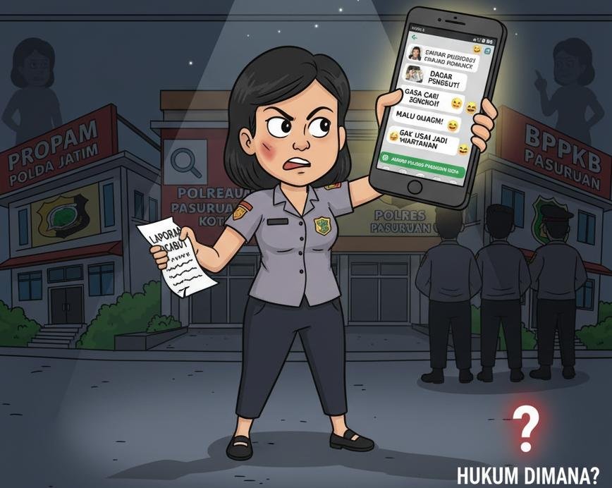 Kasus ini jauh lebih kompleks dari sekadar penganiayaan fisik. Ilmia melaporkan dugaan pelecehan seksual, pencemaran nama baik, dan bullying internal di grup WhatsApp “Admin Polres Pasuruan Kota”. Nama dan reputasinya dicemarkan secara terbuka, tanpa tindakan dari pengelola grup.